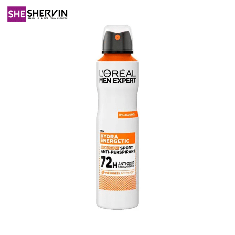 L’Oréal Men Expert Hydra Energetic Antiperspirant Spray 250ml با فناوری پیشرفته خود طراحی شده تا ضمن محافظت مؤثر ۴۸ ساعته، پوست را خنک و سرزنده نگه دارد. این اسپری، با الهام از سری محصولات مرطوبکننده Hydra Energetic لورآل، علاوهبر خاصیت ضد تعریق، دارای حس آبرسانی و شادابی فوری است.